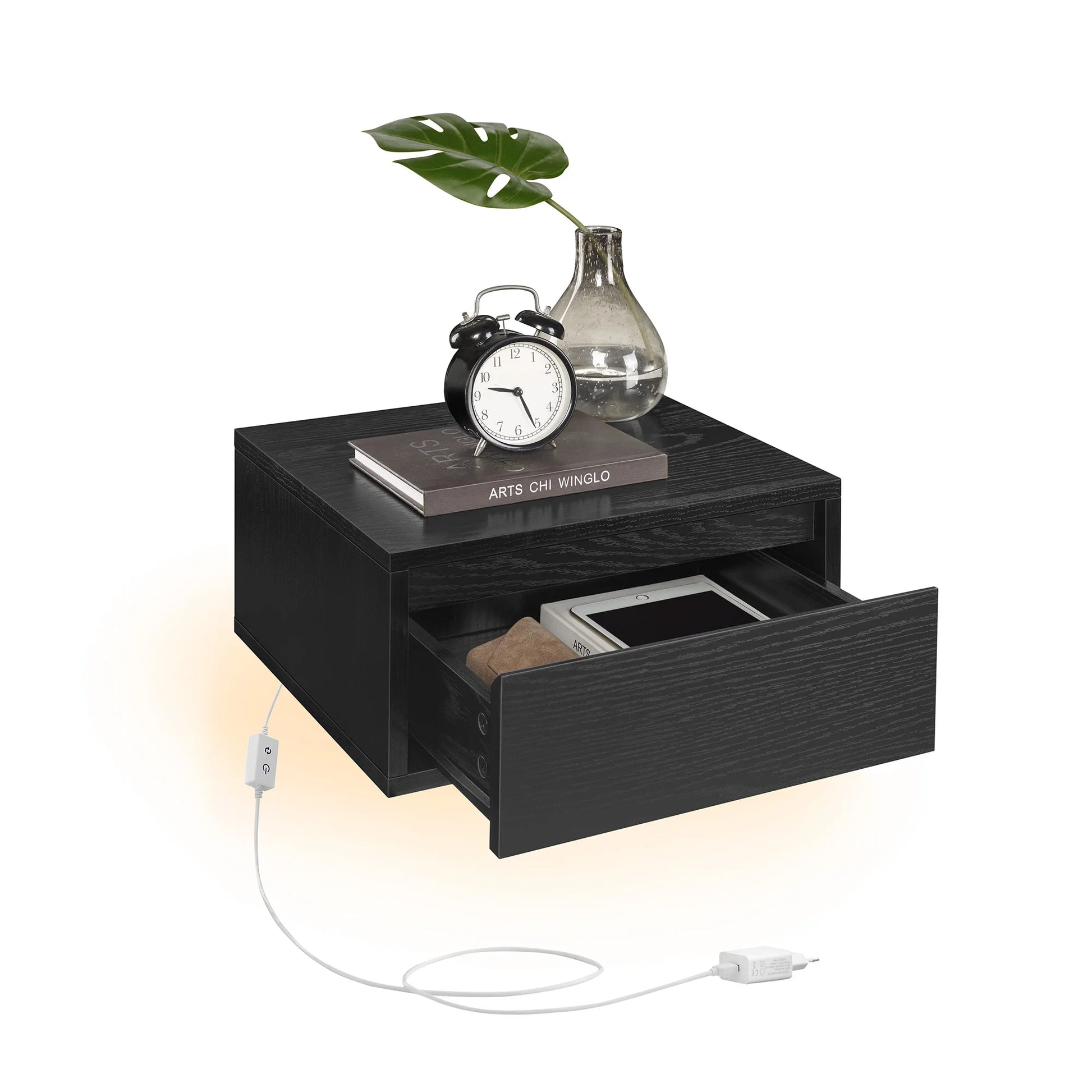 VASAGLE – Table de chevet suspendue avec lumière LED 3 couleurs, tiroir et étagère murale, style moderne pour chambre ou salon (35 x 40 x 18 cm)
